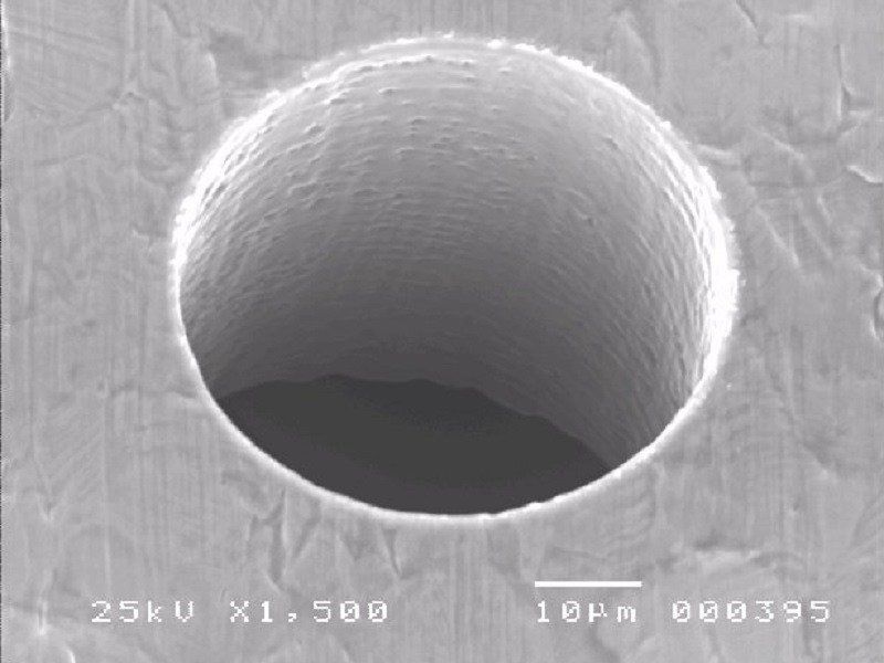 Con questo metodo, il microforo viene creato con contorni esterni netti e una qualità riproducibile è resa possibile.